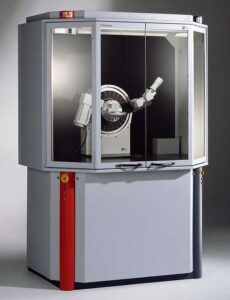 This equipment is a state of the art x-ray diffraction system with high precision, two-circle goniometers with independent stepper motors and optical encoders. The goniometers are designed to operate either horizontally or vertically. In addition, the machine is equipped with a high temperature chamber that can operate to 1200 °C. This equipment is equipped with a LinxEye Detector that reduces run time and significantly aids with through put.